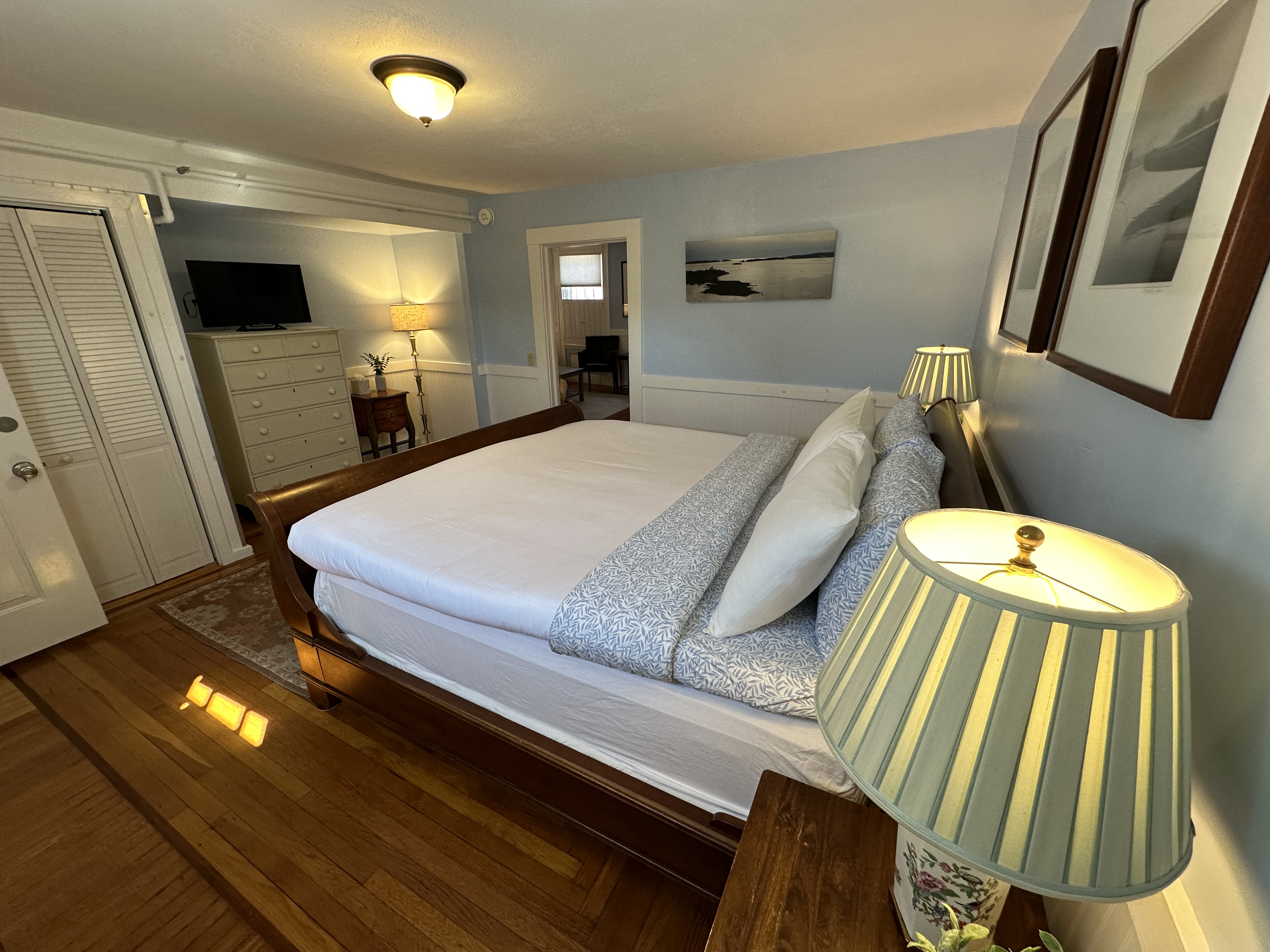 August-08 2023This is our 3rd year @ the Howland house. We love the location and the parking was available for our stay! The unit was comfortable and very clean . There were a few things I have to bring to your attention. The light/fan in both bathrooms are making loud noises which I believe are the mothers dying. The hallway from the front entrance had no lighting. We tired the switches but none were working. the desk drawer in the living room was broken when we arrived! I’m not sure if the water dispenser was overlooked because there were 3 empty water jugs ? These are important items but we still love the Inn & will return next year!