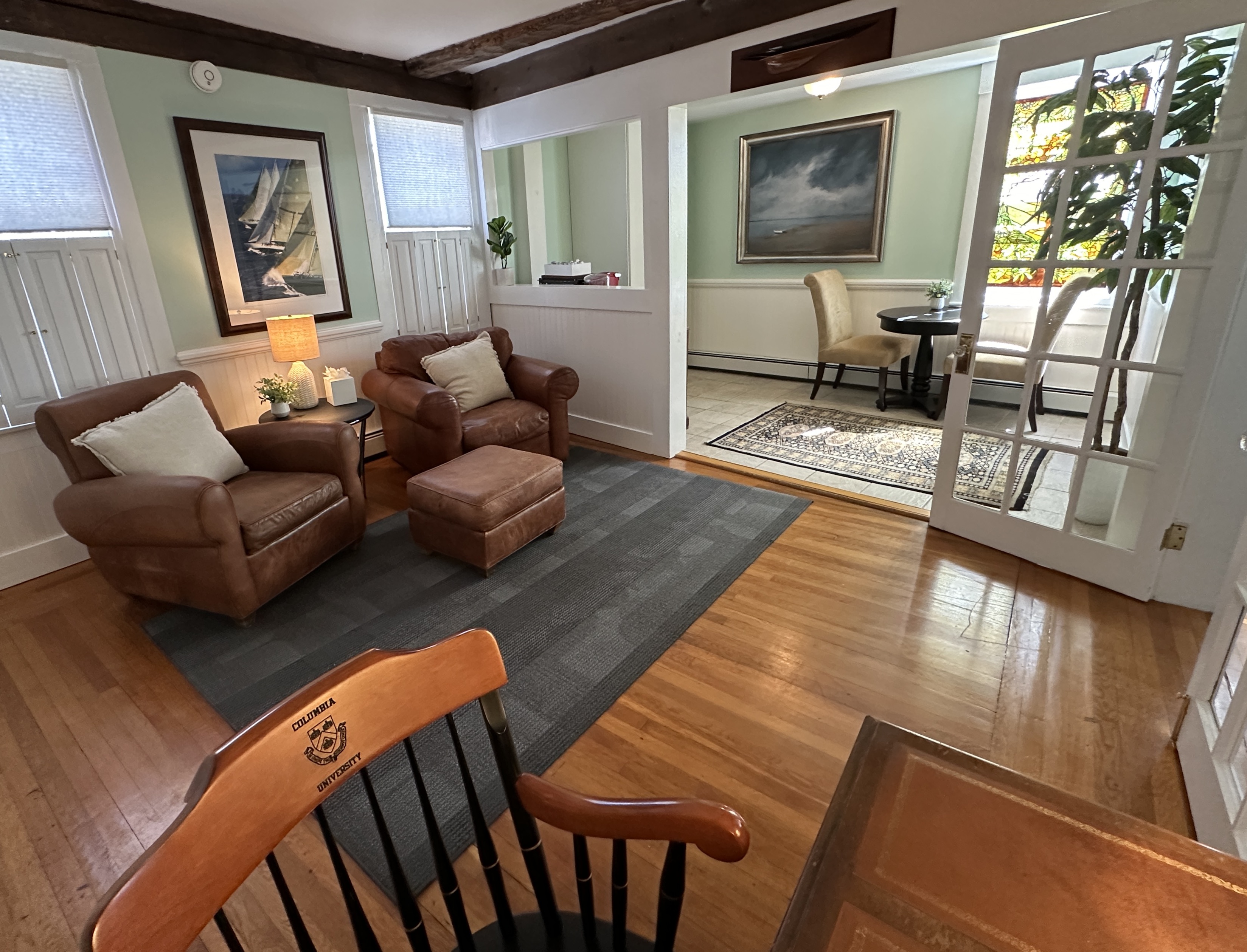 Howland House is a classic historic, four unit, building with the original construction dating back to 1750. It is one of Newport's oldest homes predating the Revolution. It has undergone many updates and renovations to bring new world comfort with an old world feeling. Unit 18 is located on the second floor and is bathed in natural sunlight. The unit has been recently refreshed with new decor. The french doors opening to the bedroom and hardwood floors throughout make it feel charming and warm. All of Windwards properties are professionally cleaned between guests and come outfitted in high end linens and towels. Aside from the cleanliness of the space, it is in one of the most sought after locations in Newport. Right outside your door you can spot historic St. Mary’s Church, and you are steps away from Thames Street, Bannisters & Bowens Wharf, and endless restaurants, bars, and shopping.